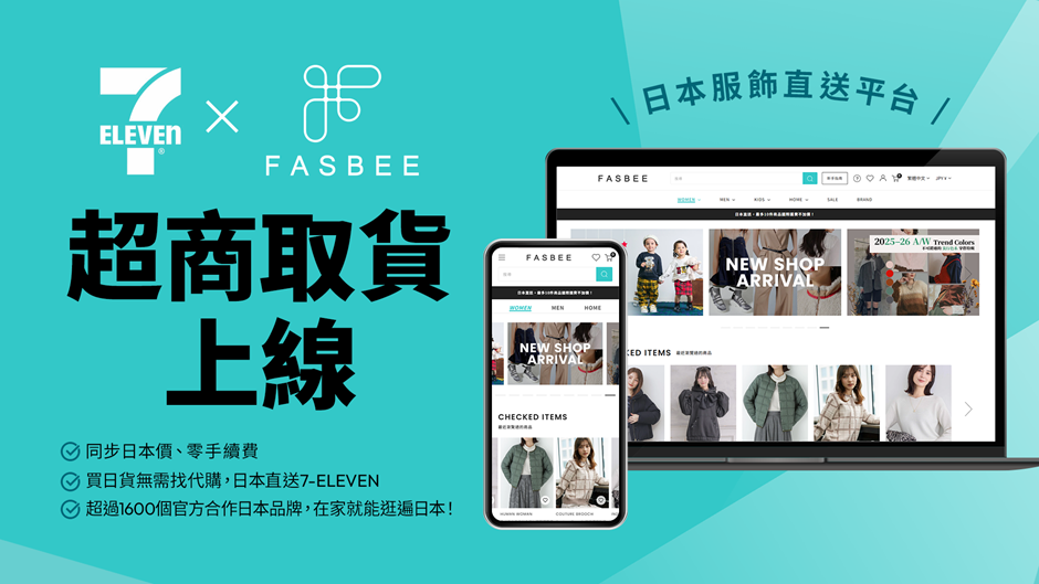 此次與7-ELEVEN合作,讓消費者能在上班、上課或日常出行時輕鬆領取商品,搭配平台簡單直覺的網站操作,讓跨境購物流程更順暢。FASBEE表示,台灣一直是重要海外市場之一,未來將持續優化服務、拓展品牌與商品選擇,致力打造更便利的日本時尚跨境購物體驗。