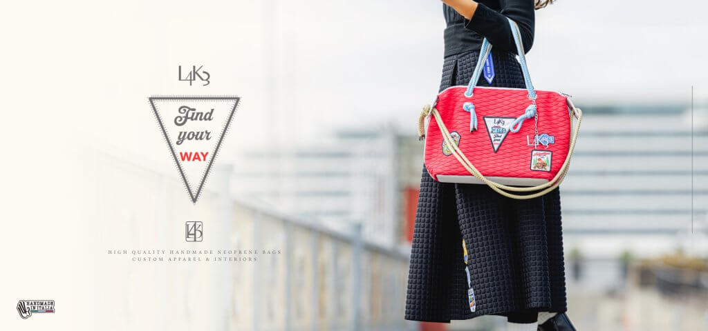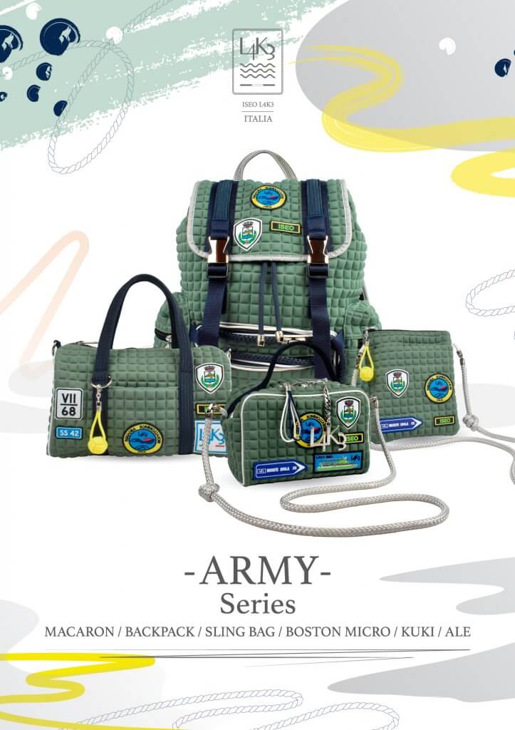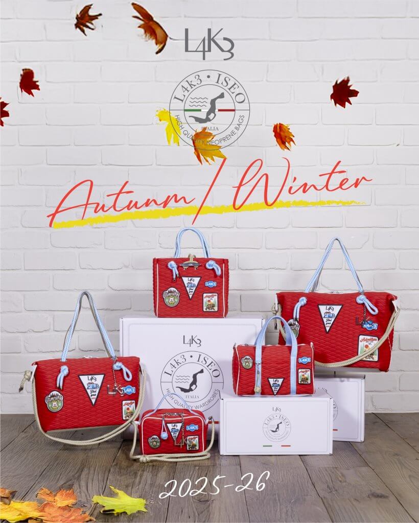 義大利手工品牌「L4K3」以知名航海繩索與潛水衣材質-氯丁橡膠布料製作的包款及 配件而廣受歡迎。其產品凝聚著匠人獨有的精湛工藝,從繩結細節到機械無法復刻的精 妙之處皆經精心雕琢,不僅兼具設計感,更以卓越實用性成為備受推崇的時尚包袋。