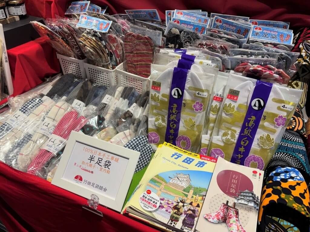 「行田足袋」的製造可追溯至江戶時代中期。昭和初期更達到年產約8,400萬雙的高峰,成為全日本產量第一的足袋產地。足袋是日本傳統和服文化不可或缺的配件,廣泛用於歌舞伎、能劇、茶道等和服文化場合。至今,行田市仍由職人手工製作,延續這份百年工藝。
